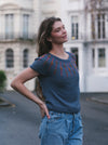 Contrast Colour (CC) for Beaded Inlay – The Rendezvous (red) for Short Sleeve version, Des Yeux de Soie (deep brown) for Long Sleeve version